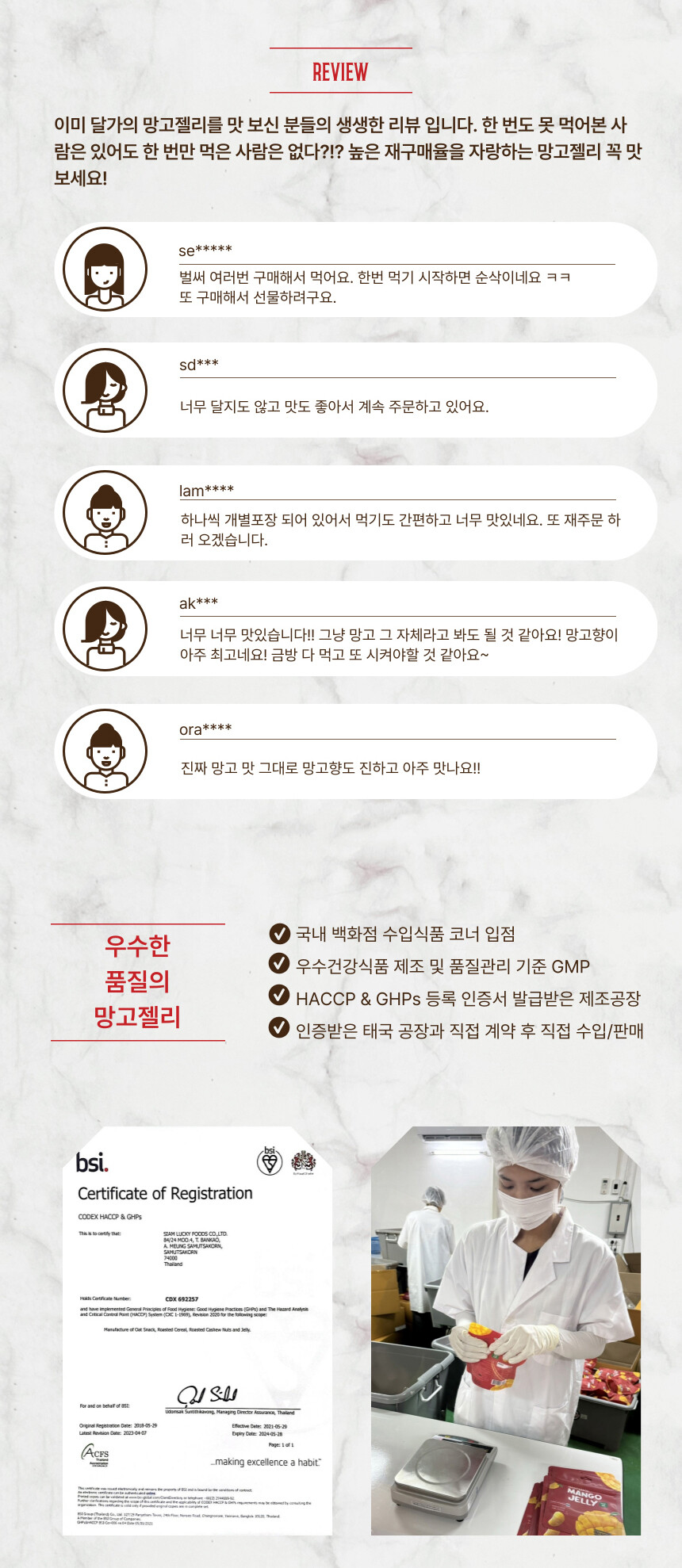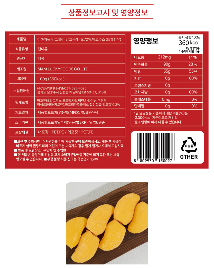 달가 태국 직수입 마하차녹 생 망고젤리 100g 개별포장